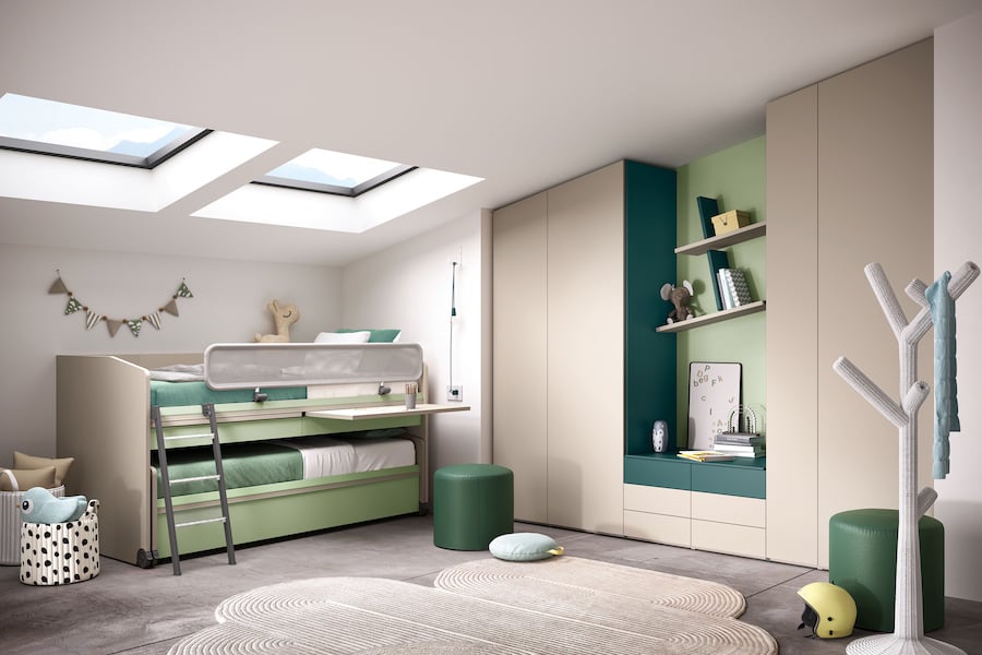 In ogni caso per due fratelli vivere nello stesso ambiente e crescere insieme è molto positivo, ma è comunque importante garantire a ciascuno la sua privacy. Per questo, va scelta una camera con due letti singoli che ti permetta di ottimizzare lo spazio disponibile dando a ognuno dei tuoi figli il loro angolo personale.