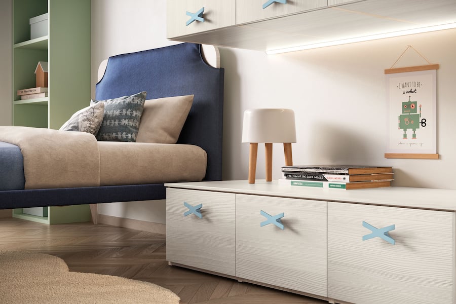 Questo non significa lasciare loro piena libertà, bensì trovare insieme una combinazione che risulti gradita, ma anche elegante e che possa accompagnarli durante la crescita. L’ideale è optare per una base neutra a cui abbinare tinte più vivaci, da riservare a singoli elementi o a dettagli come le maniglie.